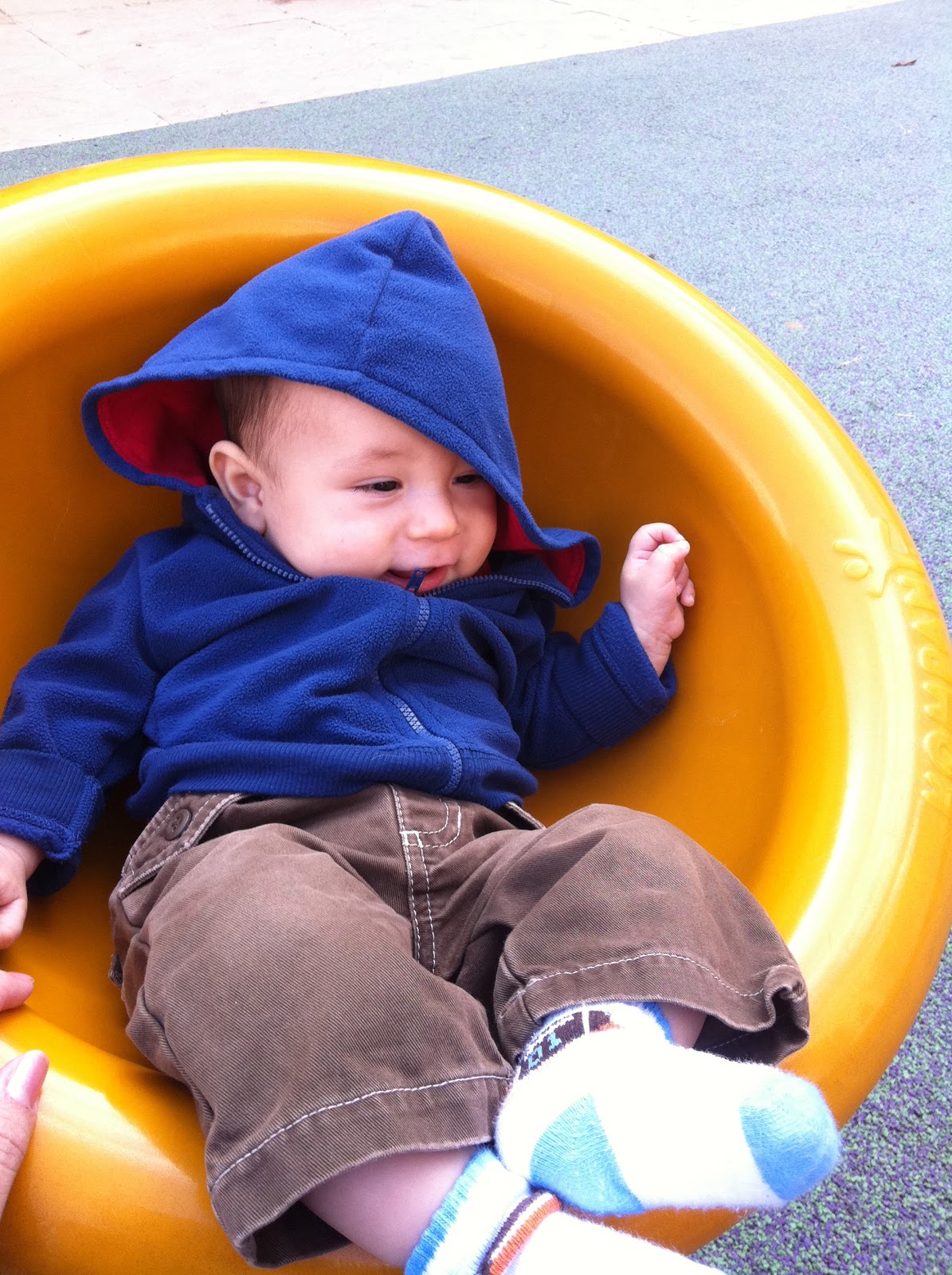 We also made it to the park. And since Miles has just started sitting up I thought we'd try out some of the playground items this time. I think he liked it! :)